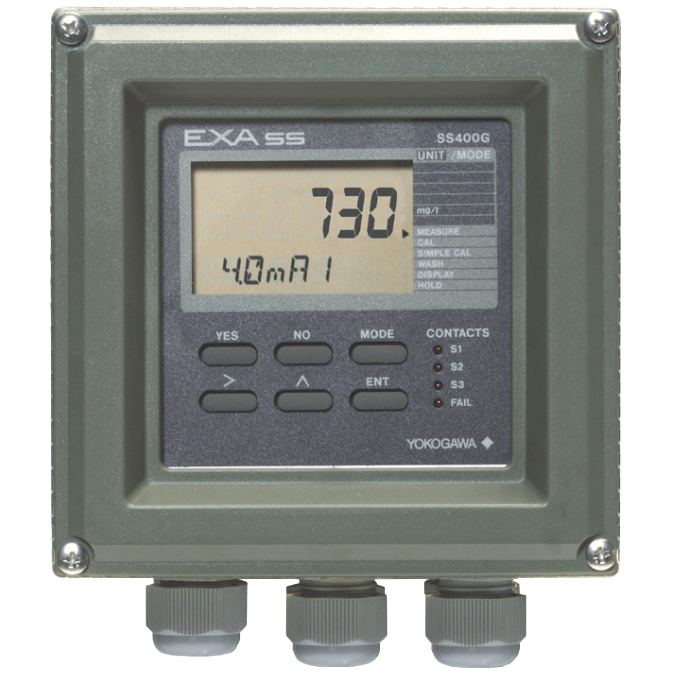 The SS400G MLSS converter has a measuring range as wide as 500 to 20,000 mg/L (ppm). Microprocessorbased, it has a wealth of self-diagnostic functions and alarm contact outputs like other converters in the EXA series, as well as excellent operability. A self-cleaning floating holder is available in addition to free-standing and immersion models, offering a wide range of choices according to the application needs.