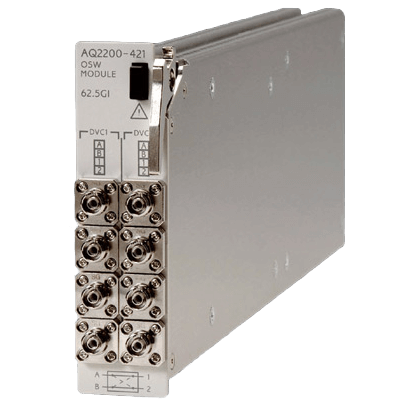 The AQ2200-421 OSW module features two optical switches with low insertion loss and superior switching reproducibility, in a one-slot size module, and allows selection of 1 x 2 or 2 x 2 port configuration according to the application.